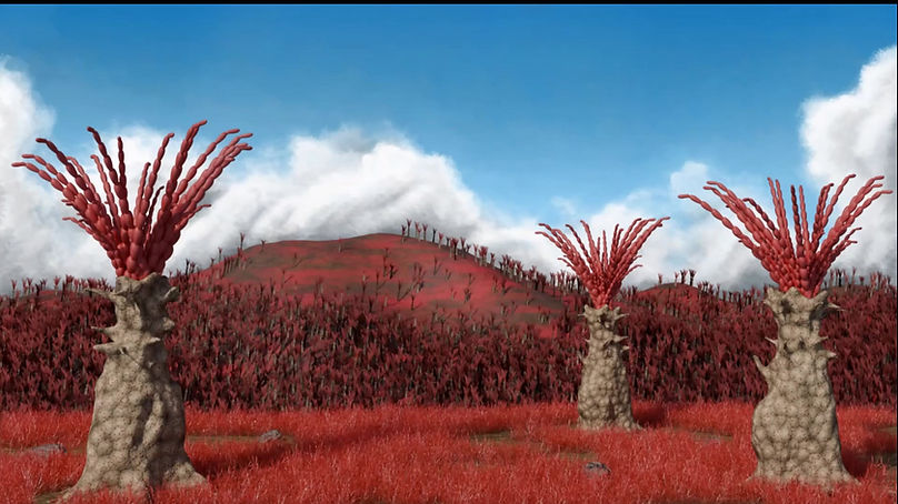 This was done as a submission to the YouTube show Alien Biospheres, the shot composition I will do my best to describe. The reference photo is a fictional alien plant known as a Nodophyte, made by YouTuber Biblaridion.